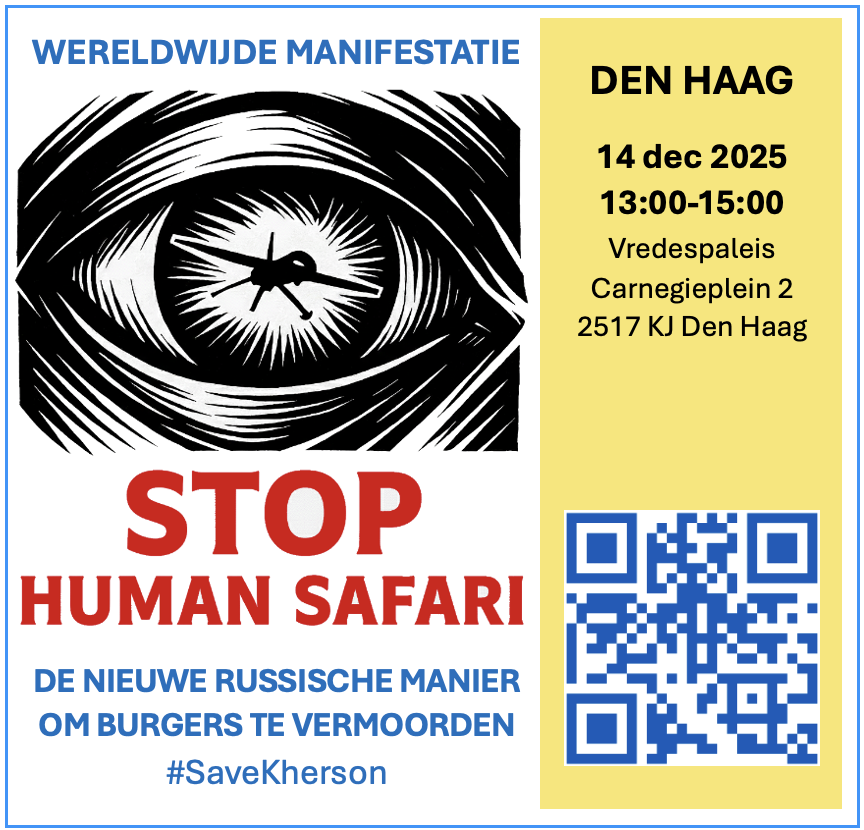 Human Safari fait référence à une campagne de terreur russe dans la région ukrainienne de Kherson, au cours de laquelle les troupes russes déploient des drones (tels que des drones kamikazes FPV équipés d'explosifs) pour traquer et tuer délibérément des civils. L'objectif est de semer la terreur, de chasser la population et de rendre la ville invivable, ce qui constitue un crime de guerre et un crime contre l'humanité, selon les enquêtes des Nations unies et les organisations de défense des droits de l'homme. Les pilotes russes partagent souvent des vidéos d'attaques contre des piétons, des cyclistes, des ambulances et des services d'urgence via Telegram, renforçant ainsi le terme ‘safari’ (chasse). Les habitants se sentent traqués ; beaucoup utilisent des détecteurs ou ne sortent de chez eux que la nuit. Depuis sa création, des centaines de civils ont été tués ou blessés, et la population de Kherson a chuté de ~320 000 à ~60 000-80 000 habitants.