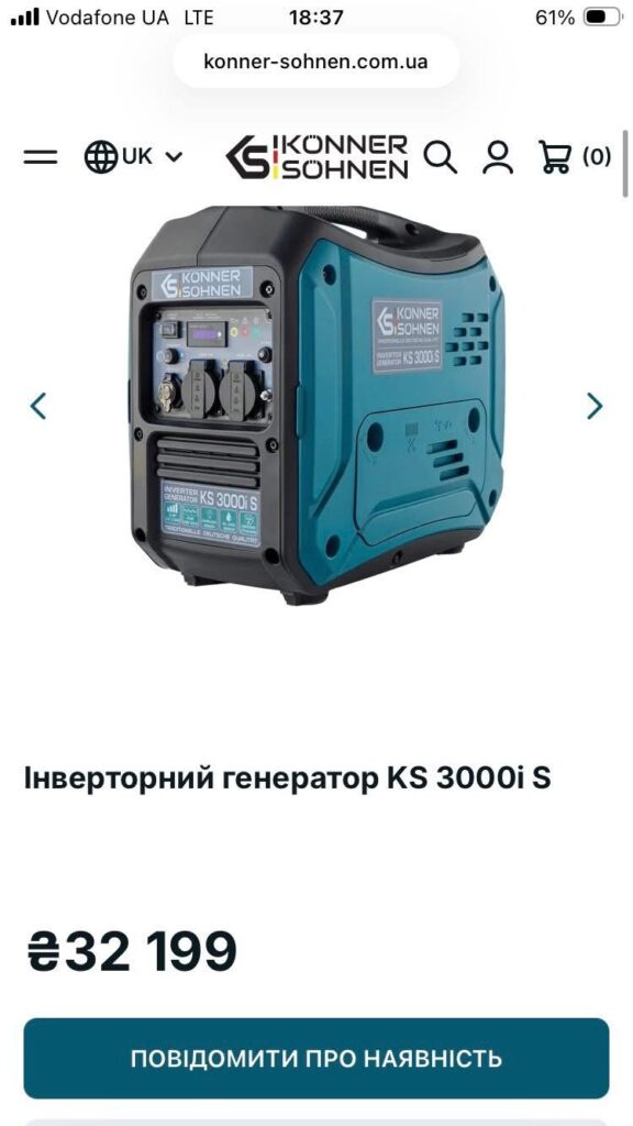 Les deux générateurs Konner et Sohnen KS3000i sont en vente pour un total de 64400UAH. Une remise de 12400UAH a été obtenue, ce qui laisse 52000UAH pour l'achat. Finalement, 51518.40UAH ont été payés au vendeur.