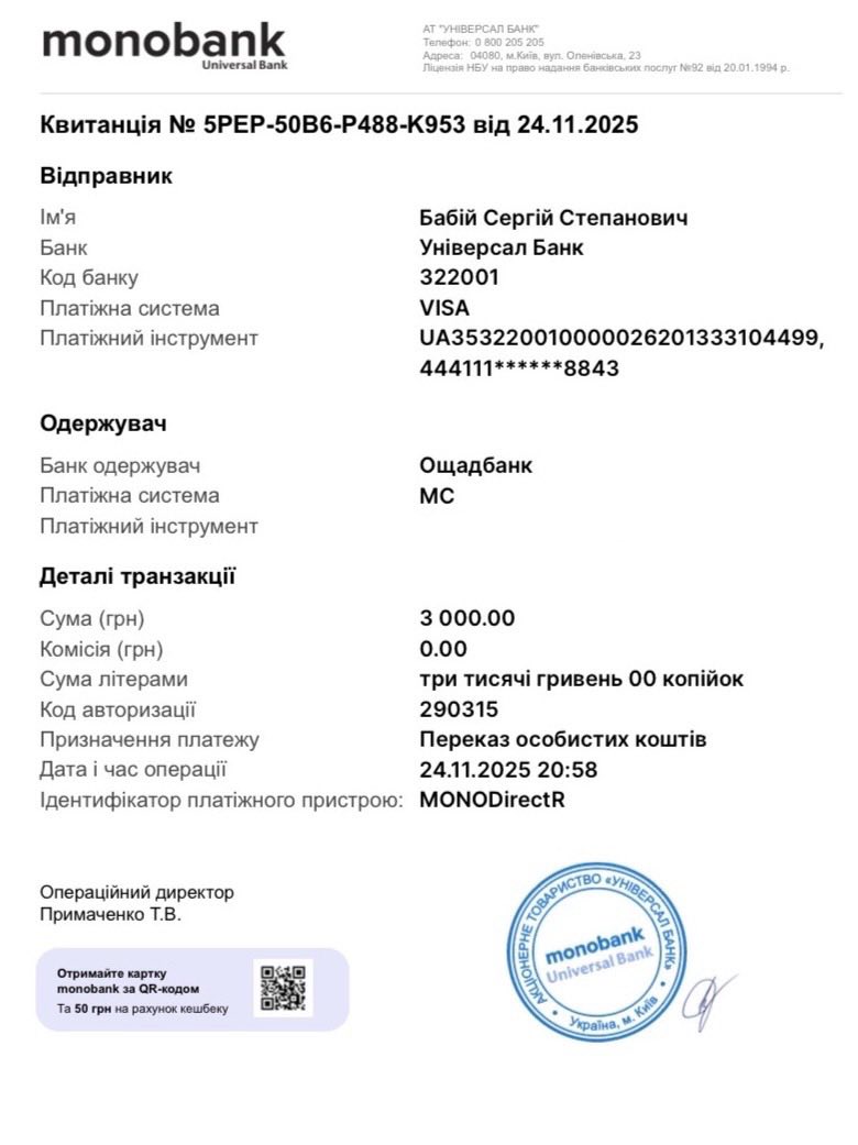 Monobank : https://send.monobank.ua/jar/8hHh6j7bhH