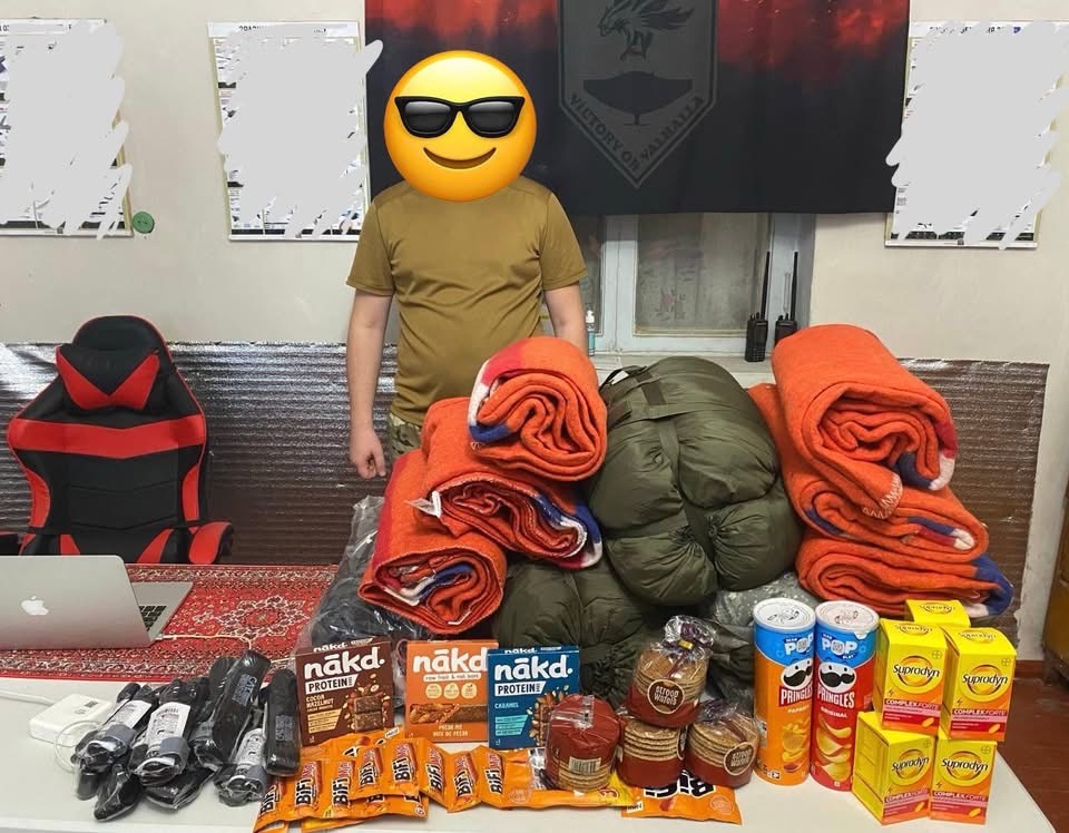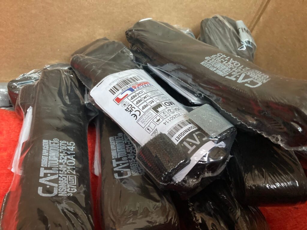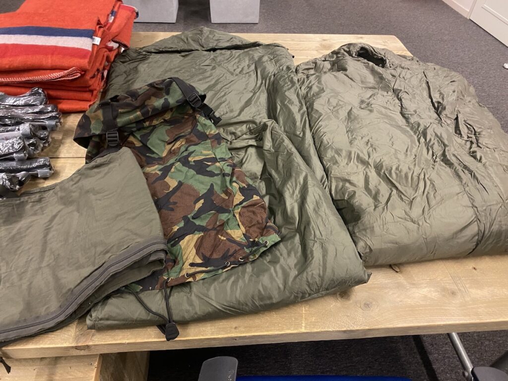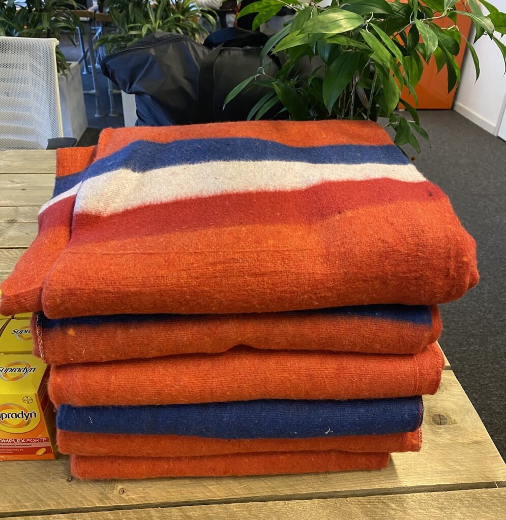 Sacs de couchage, couvertures en laine, garrots Cat7 et friandises.