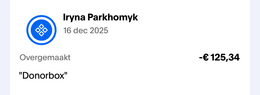 PayPal 71555,84 UAH ($1,703.71), inclusief Donorbox (€ 125,34 / 6229UAH)
